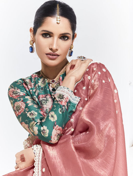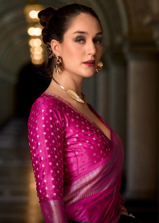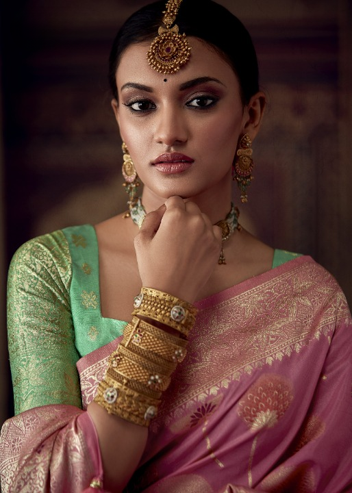 Onion Pink Crush Tissue Silk Saree With Designer Blouse