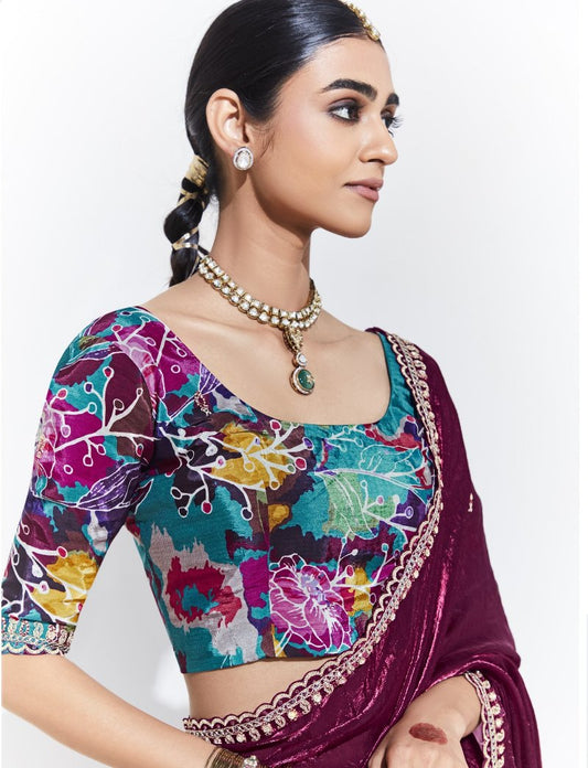 Berry Blue Crush Tissue Silk Saree With Designer Blouse