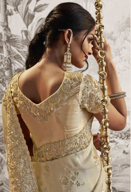 Porcelain Ivory Crush Tissue Silk Saree With Designer Blouse