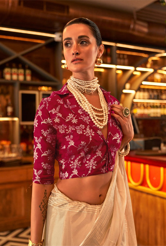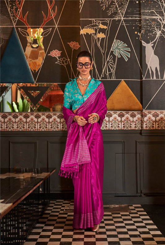 Hot Pink Soft Silk Saree With Brocade Blouse