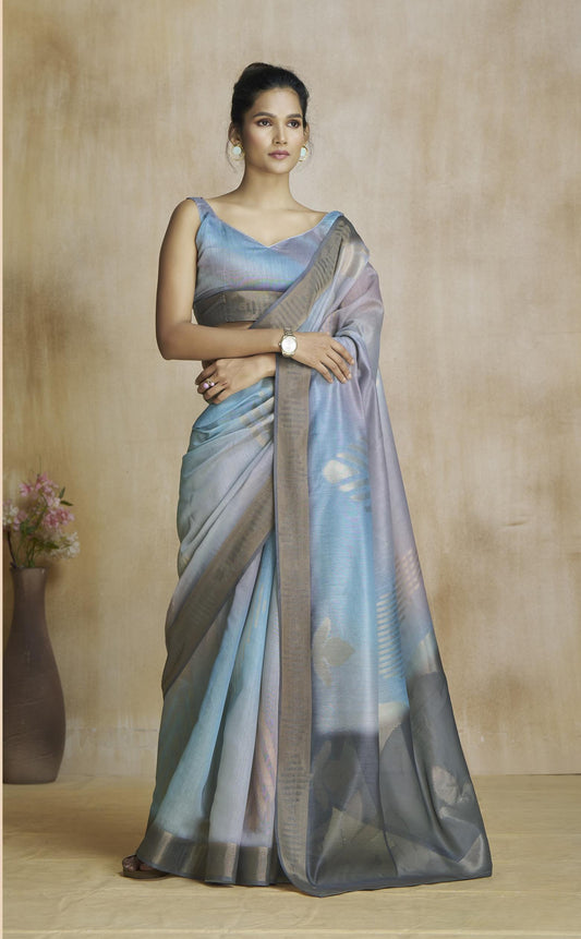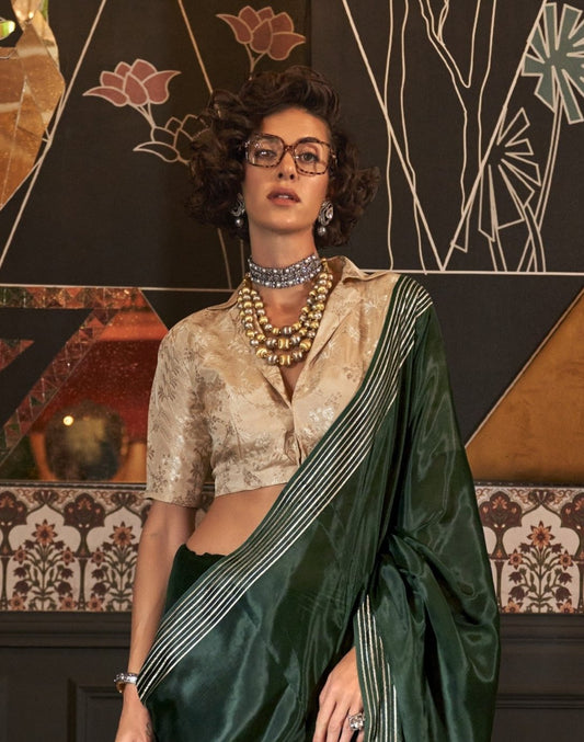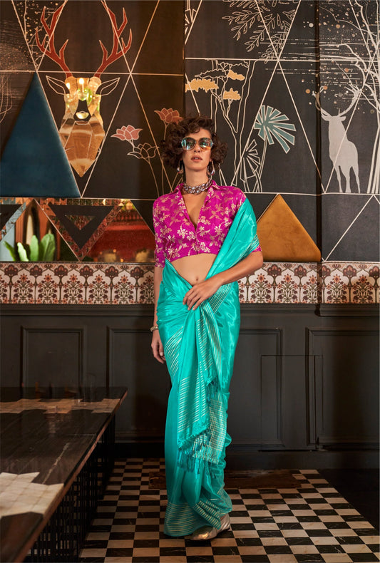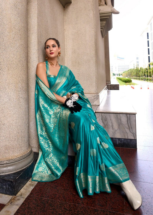 Turquoise Green Soft Silk Saree With Brocade Blouse