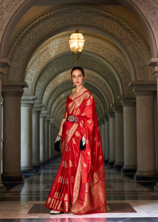 Strawberry Red Soft Silk Saree With Brocade Blouse