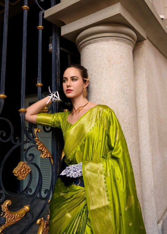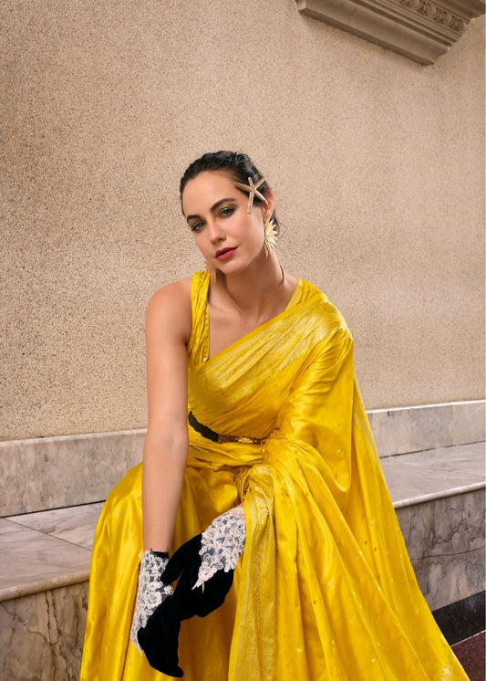 Vibrant Yellow Woven Satin Silk Banarasi Saree