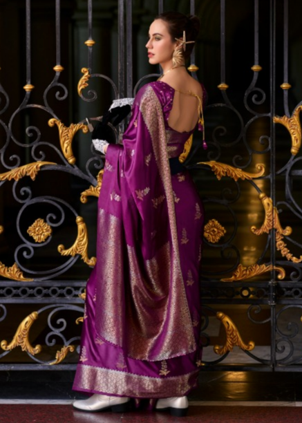 Eggplant Purple Woven Satin Silk Banarasi Saree