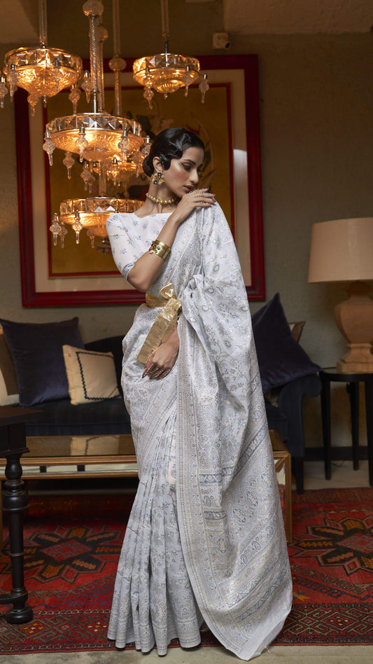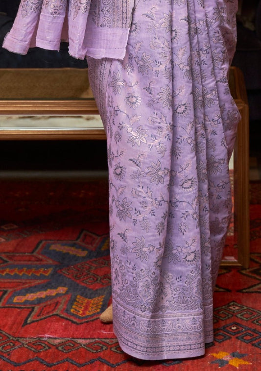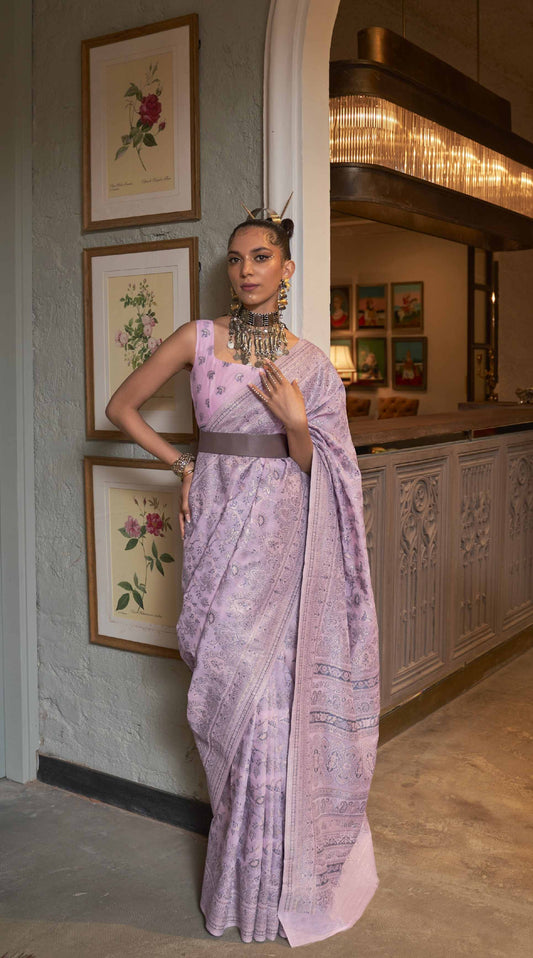 Indigo Purple Kashmiri Kani Handloom Woven Silk Saree