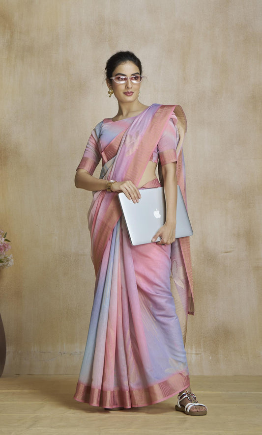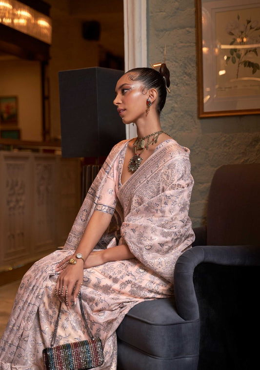 Blush Pink Kashmiri Kani Handloom Woven Silk Saree