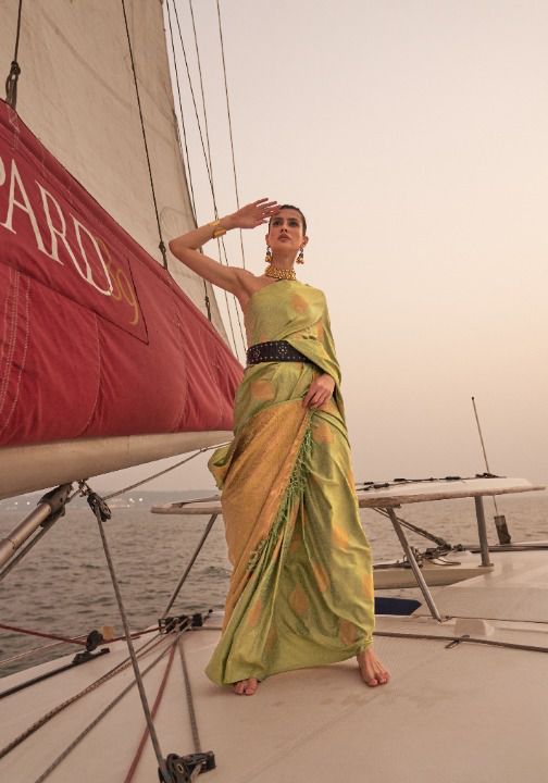Sage Green Zari Woven Broad Floral Border Handloom Silk Saree