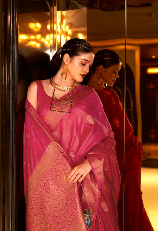 Pink Zari Handloom Silk Saree