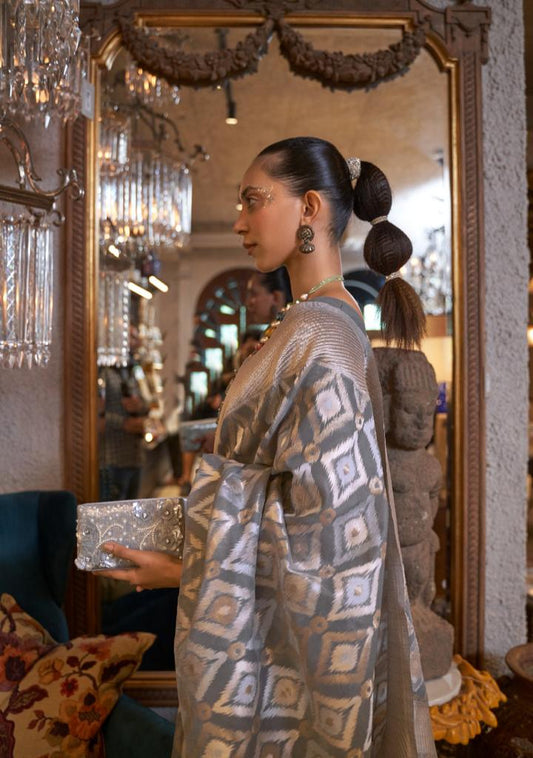 Steel Grey Copper Zari Handloom Silk Saree