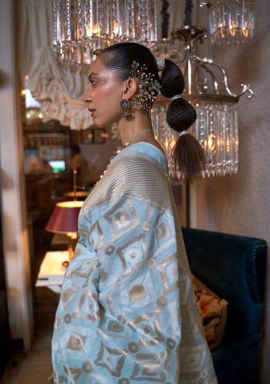 Light Blue Handloom Woven Linen Saree