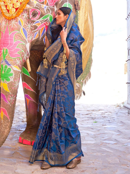 Lapis Blue Banarasi Handloom Soft Silk Saree