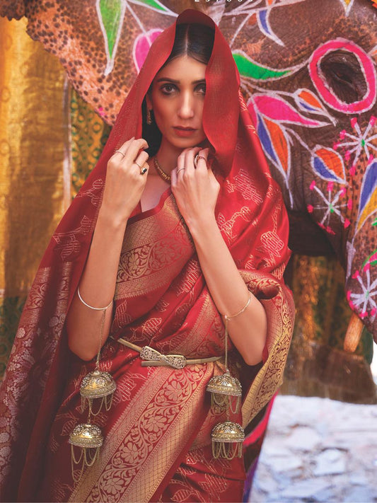 Scarlet Red Banarasi Handloom Soft Silk Saree