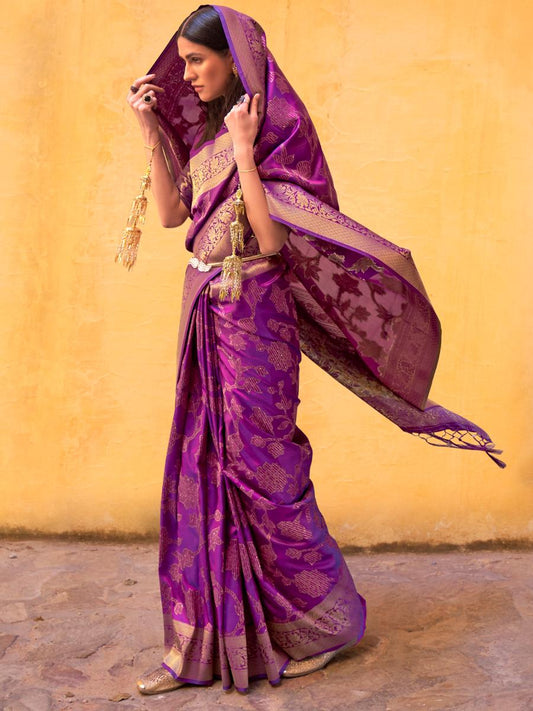 Pancy Purple Banarasi Handloom Soft Silk Saree