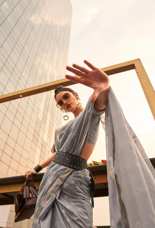 Smog Grey Copper Zari Woven Linen Silk Saree