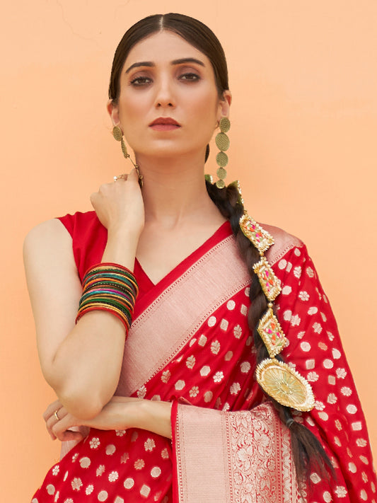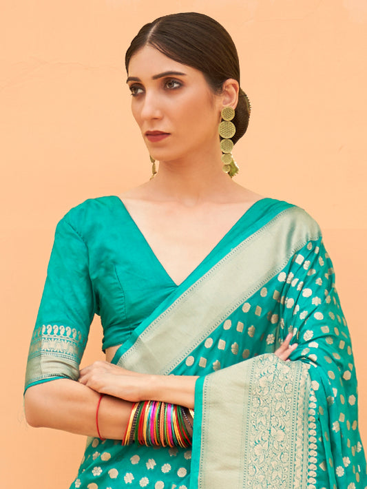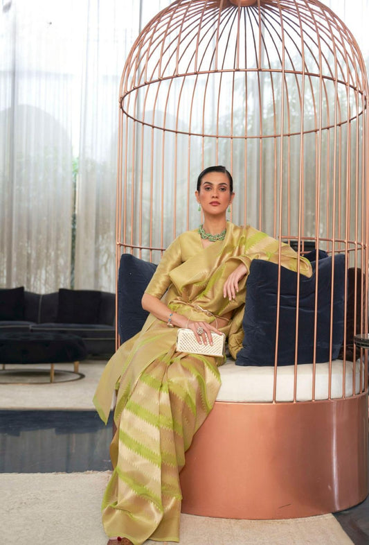 Parrot Green Copper Zari Woven Linen Silk Saree