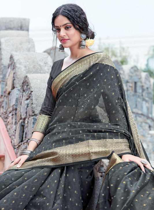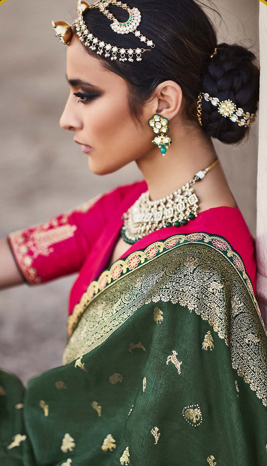 Forest Green Banarasi Silk Saree With Designer Blouse