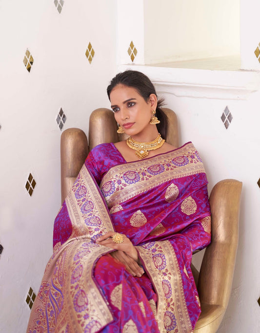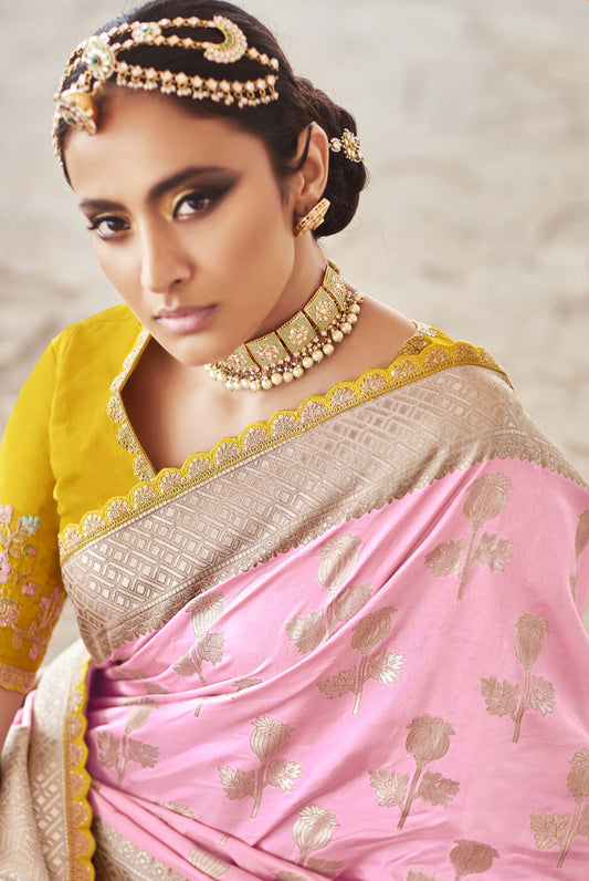 Rose Pink Banarasi Silk Saree With Designer Blouse