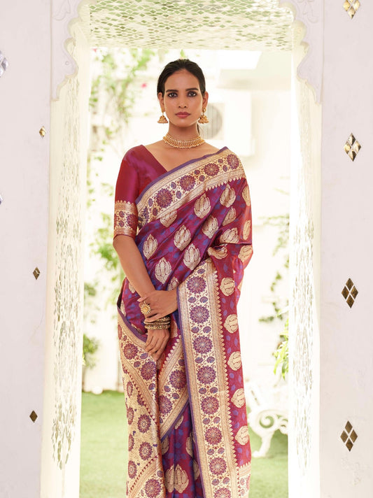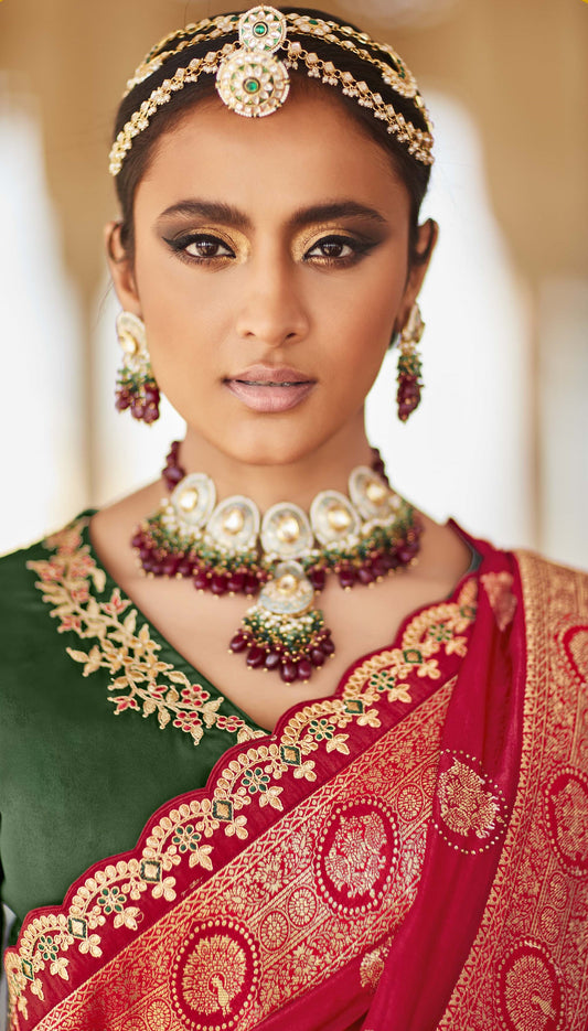 Bridal Red Banarasi Silk Saree With Designer Blouse