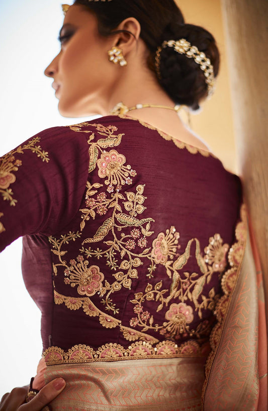 Chestnut Peach Banarasi Silk Saree With Designer Blouse