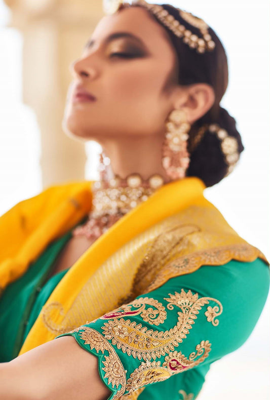 Turmeric Yellow Banarasi Silk Saree With Designer Blouse