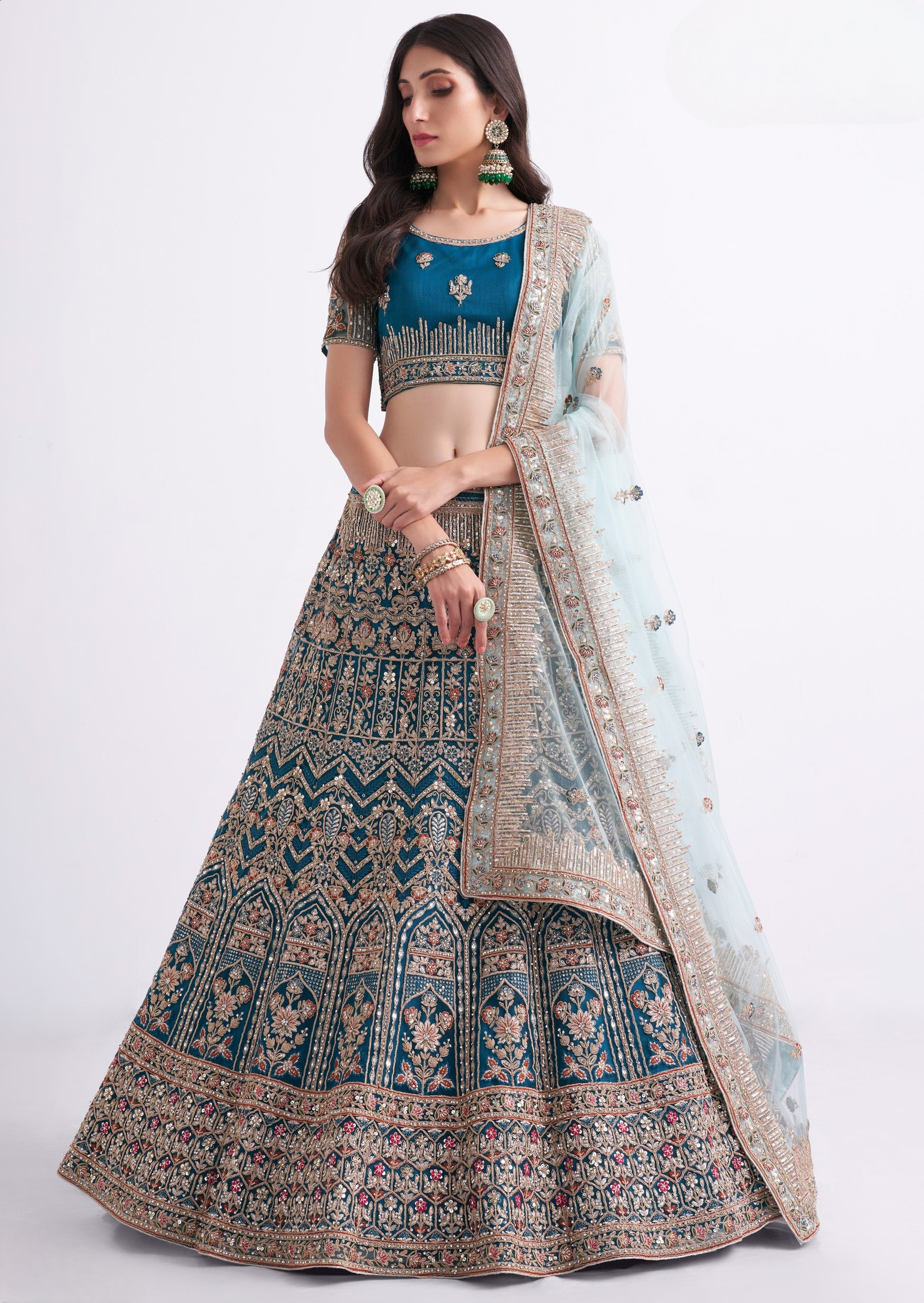 Aegean Blue Heavy Embroidered Georgette Designer Lehenga