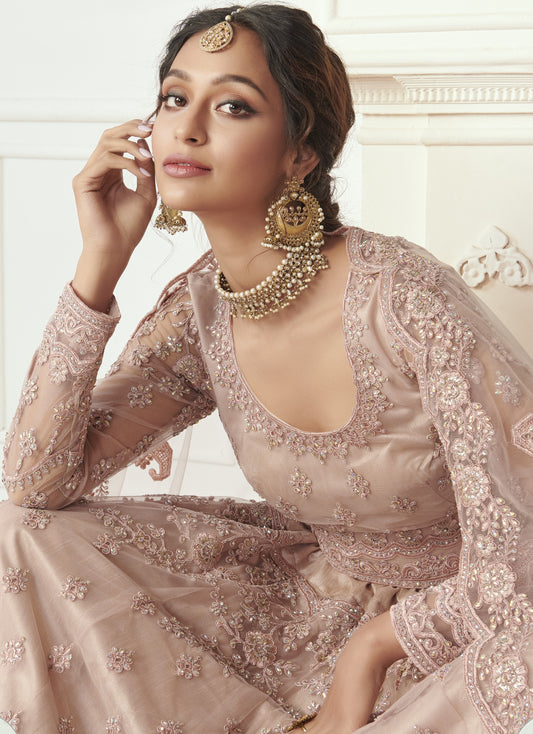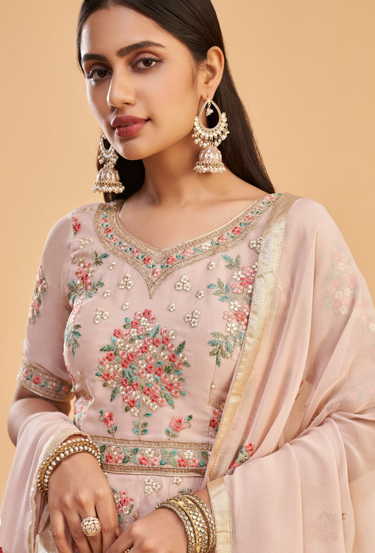 Pastel Pink Embroidered Georgette Anarkali Gown