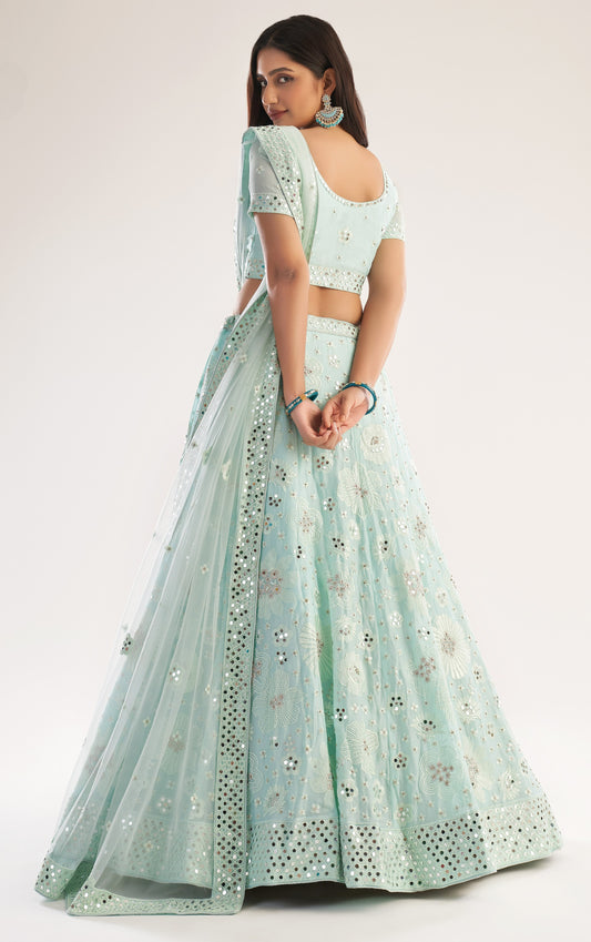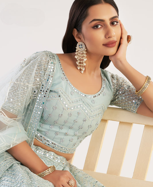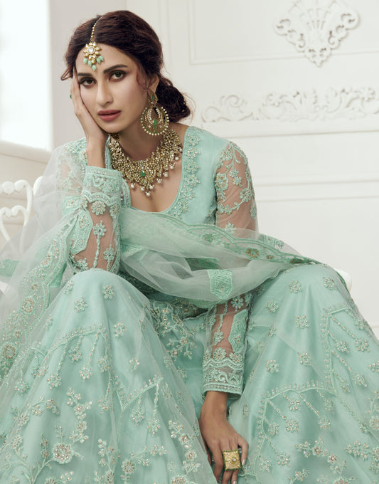 Sea Green Heavy Embroidered Net Bridal Lehenga
