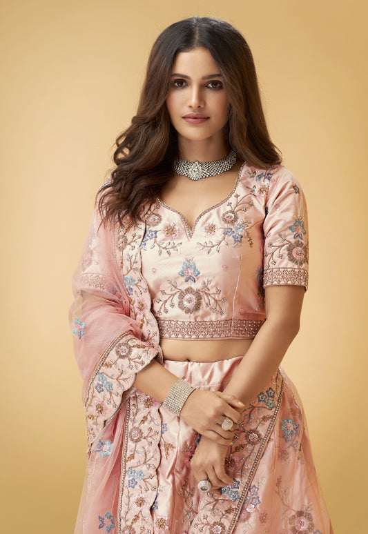 Lemonade Pink Embroidered Bridal Silk Lehenga