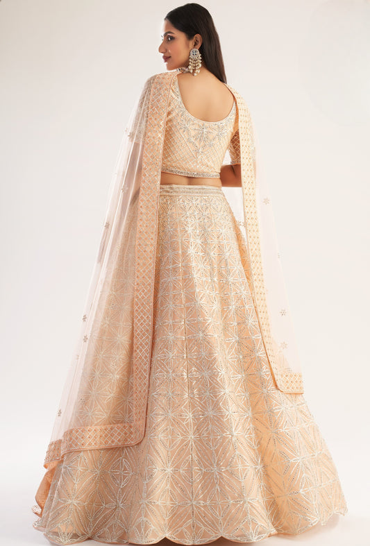 Cantaloupe Peach Heavy Embroidered Net Bridal Lehenga