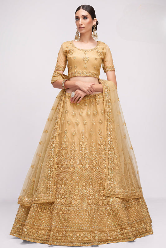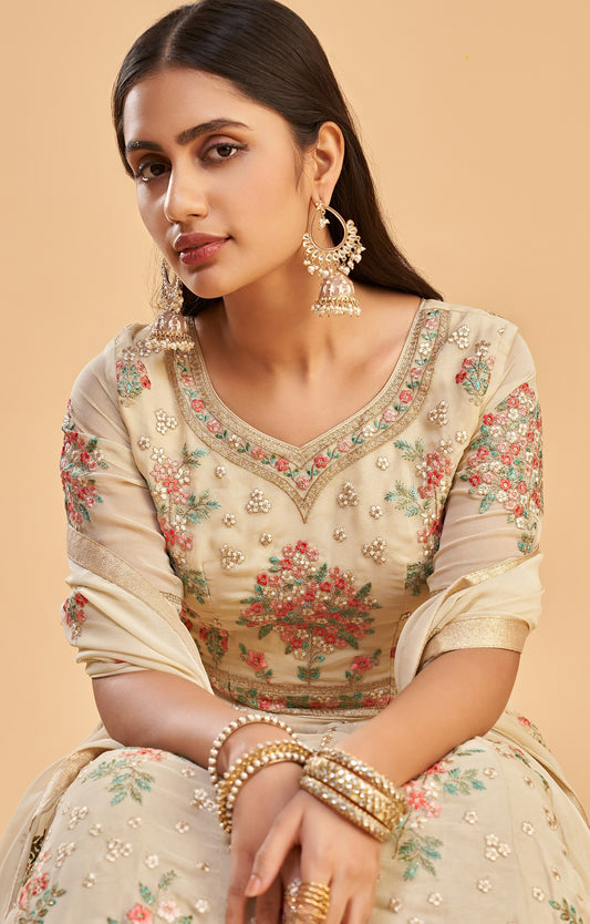Butter White Heavy Embroidered Net Bridal Lehenga