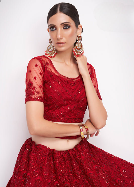 Rose Pink Heavy Embroidered Net Bridal Lehenga