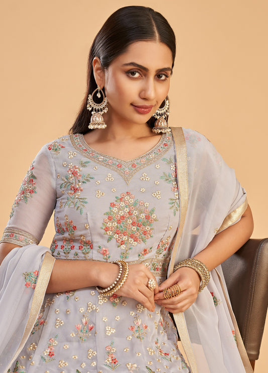 Pale Yellow Embroidered Georgette Anarkali Gown