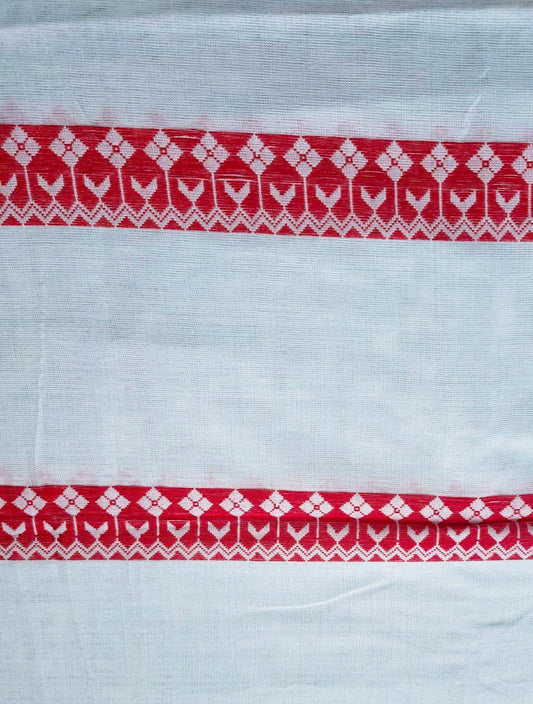 Red Chevron Printed Handloom Cotton Mulmul Saree