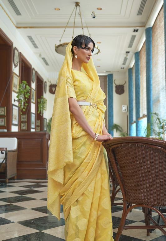 Minion Yellow Weaved Lucknowi Chikankari Saree