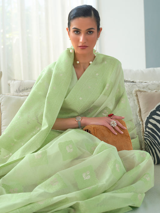 Pistachio Green Weaved Lucknowi Chikankari Saree
