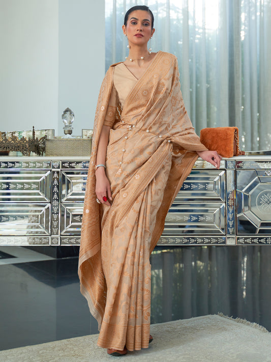 Sand Brown Weaved Lucknowi Chikankari Saree