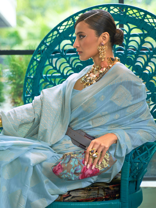Powder Blue Weaved Lucknowi Chikankari Saree