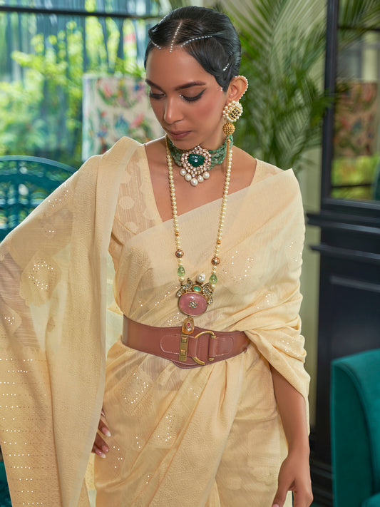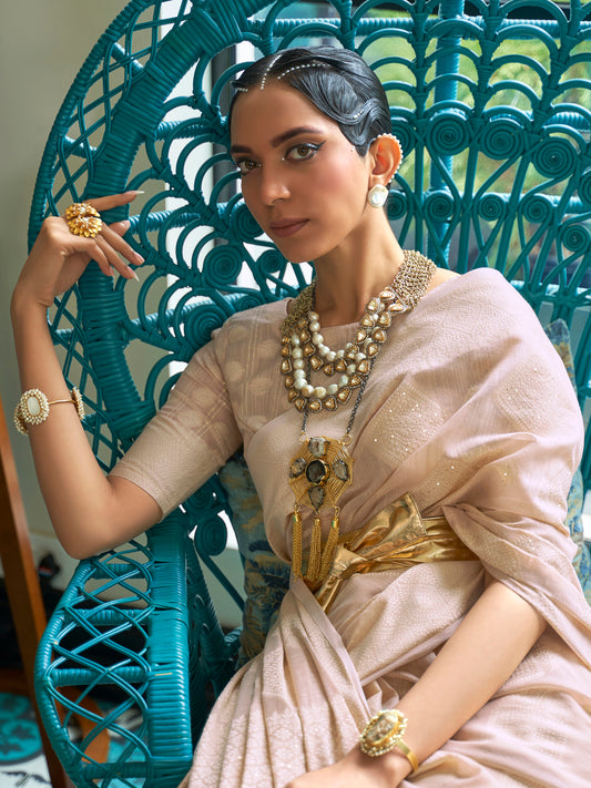 Porcelain Beige Weaved Lucknowi Chikankari Saree