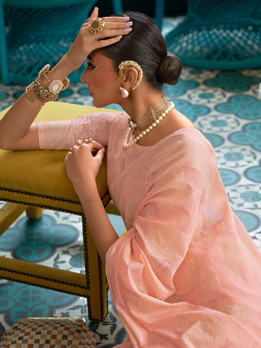 Blossom Peach Weaved Lucknowi Chikankari Saree