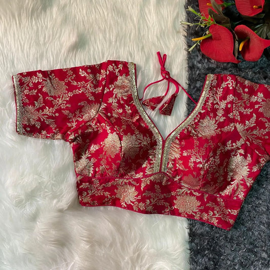 Banarasi Silk Blouse With Embroidered Lace
