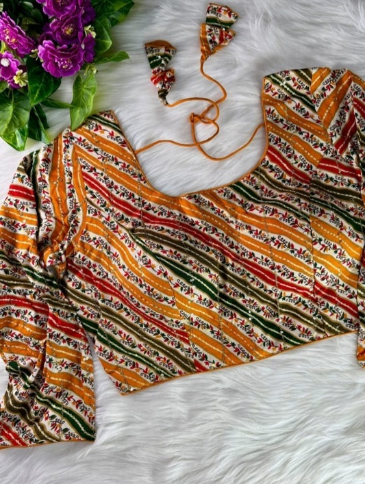 Meera Printed Pichwai Designer Blouse With Sequins Handwork