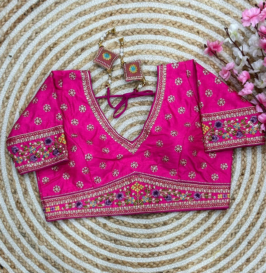 Embroidered Flowers With Sequins Designer Blouse With Latkans