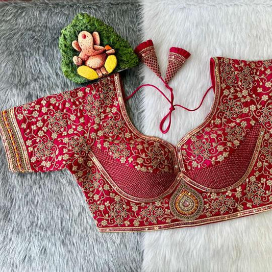 Sequin and Zari Embroidered Designer Blouse- Plus Size