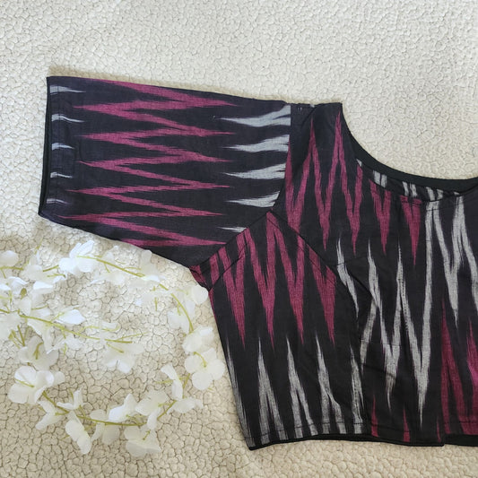 Ikkat Handloom Woven Cotton Regular Boatneck Blouse