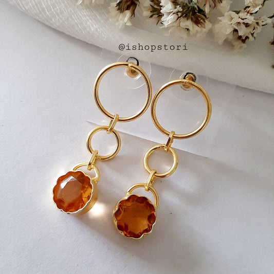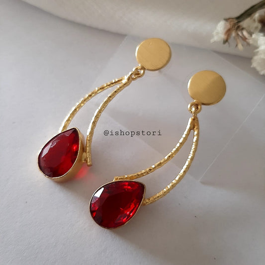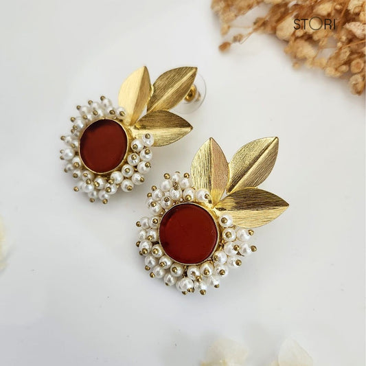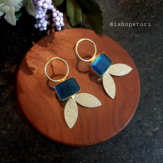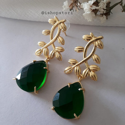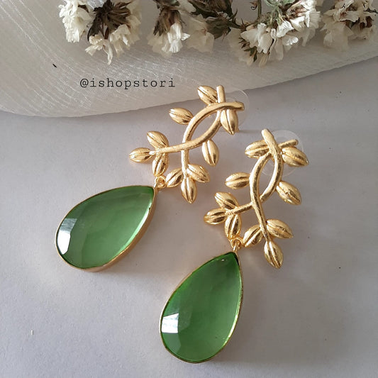 Ekaterina Tear Drop Stone & Golden Leaves Statement Earrings