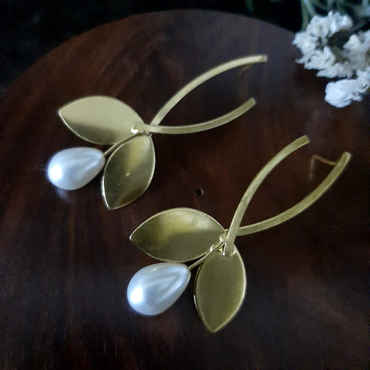 Golden Sepals & Natural Pearl Bud Statement Earrings