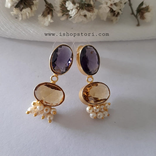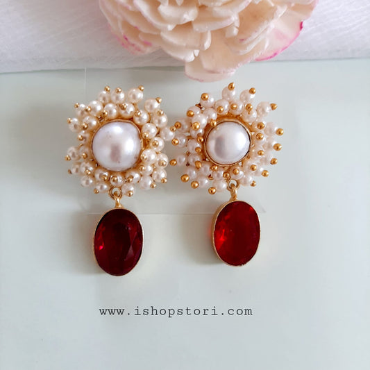 Kaaira Fresh Water Pearls Halo & Oval Glossy Stone Earrings