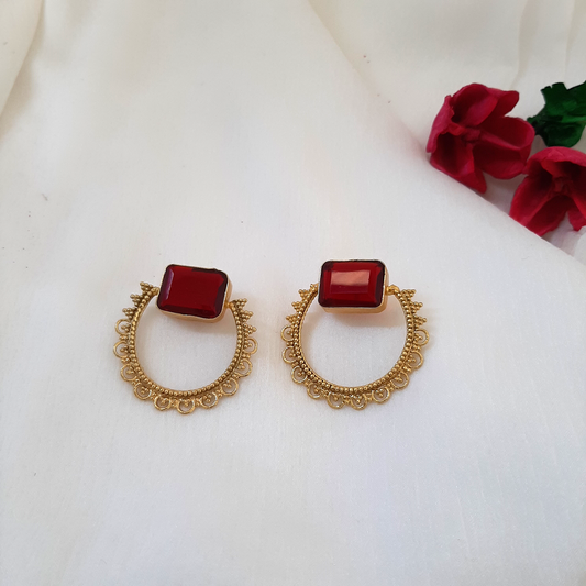 Rectangle Stone & Hoop Statement Earrings