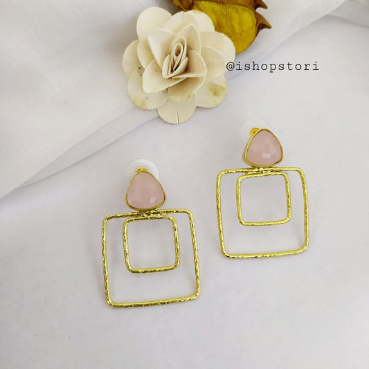 Aakruti Stone & Golden Polish Square Statement Earrings