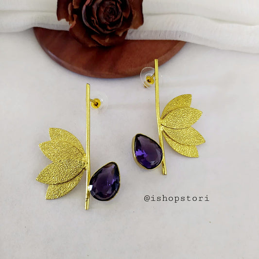 Raina Golden Petals & Stone Statement Earrings